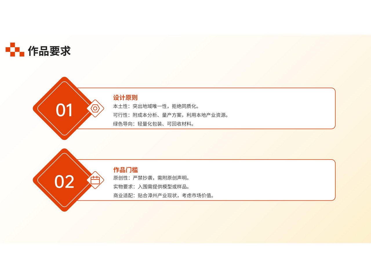 3.作品应贴近漳州产业现状,并充分考虑市场价值和可实现性。